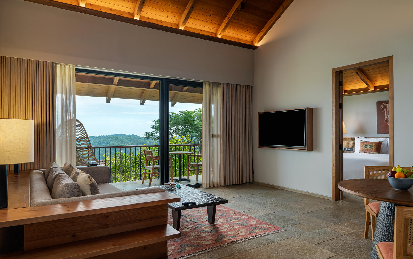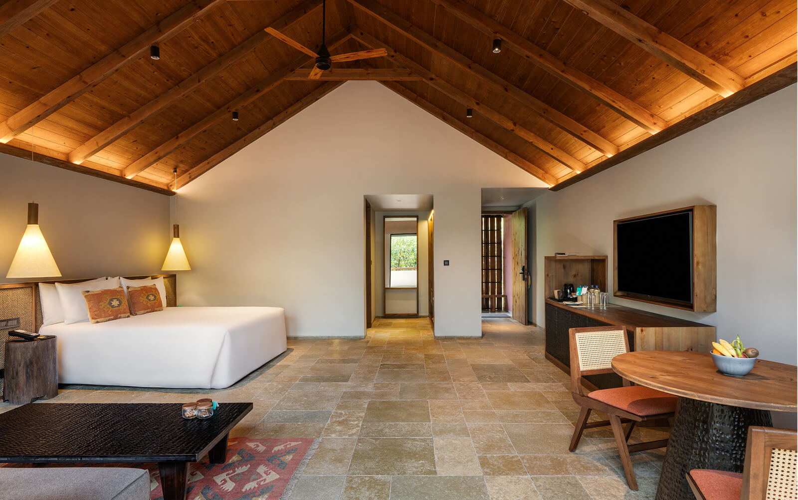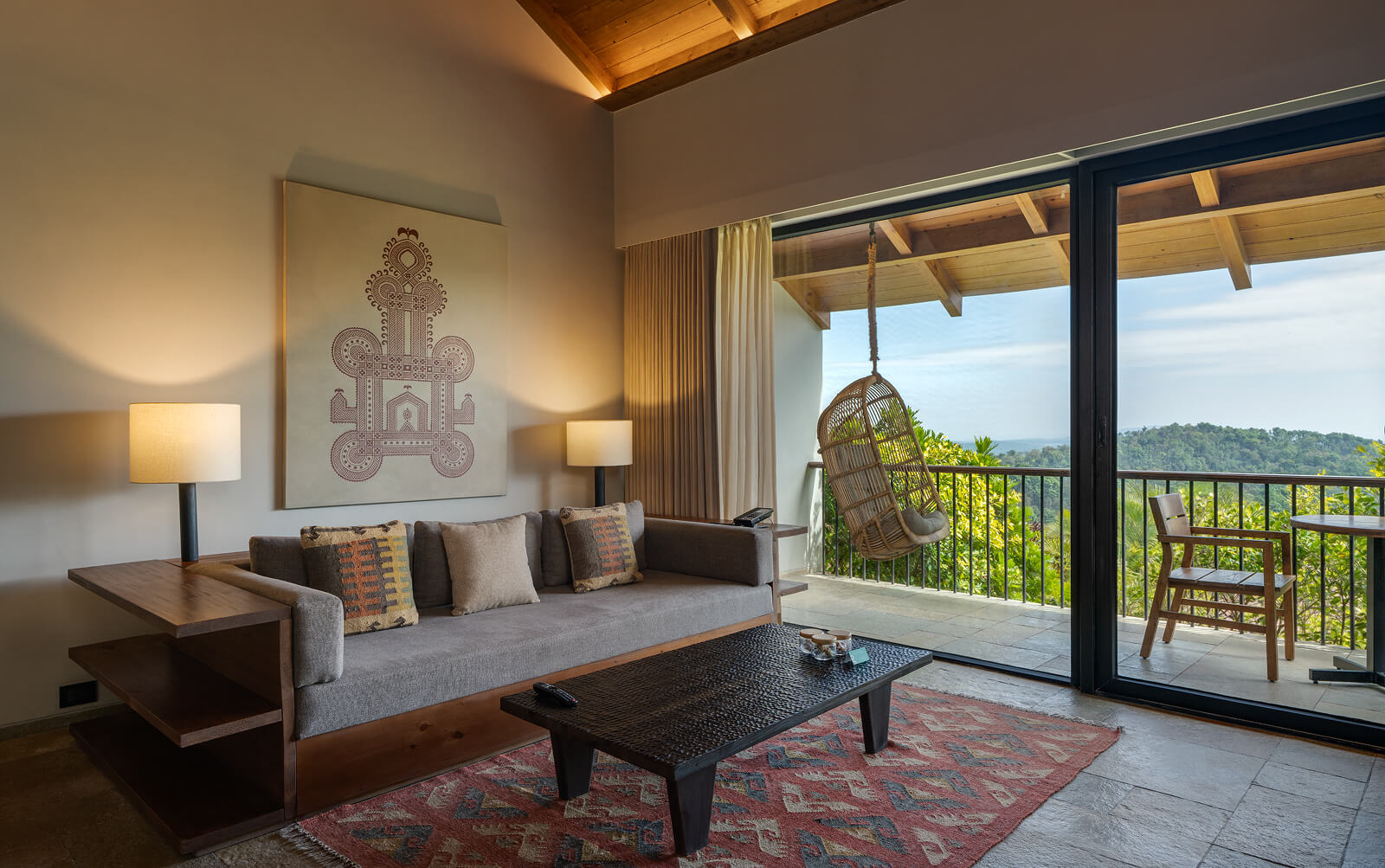 Our cottages, suites and rooms are shaped by the landscape they are set in. Some are tucked into the hillside. Others tower over the lush surroundings. And, each one is designed to relax, its quiet luxury interrupted only by birdsong. Drenched in natural light, our interiors blend our India Modern vibe with folk art and thoughtful details that make every stay special.