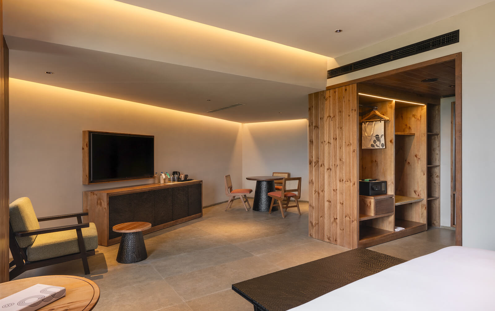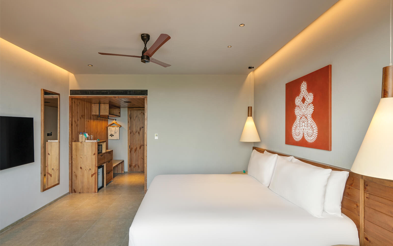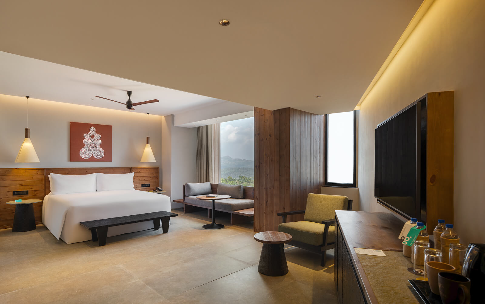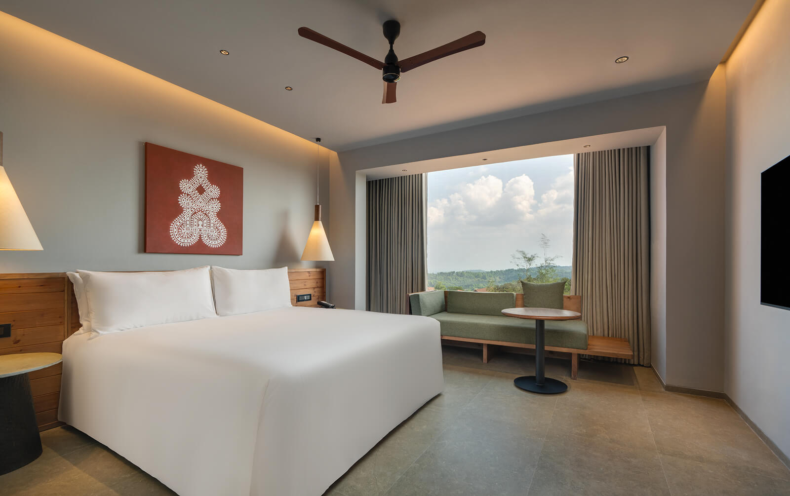 Our cottages, suites and rooms are shaped by the landscape they are set in. Some are tucked into the hillside. Others tower over the lush surroundings. And, each one is designed to relax, its quiet luxury interrupted only by birdsong. Drenched in natural light, our interiors blend our India Modern vibe with folk art and thoughtful details that make every stay special.